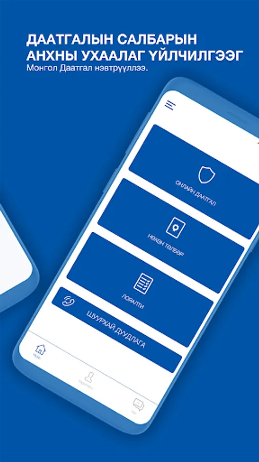 Mongolian primary Insurance company Mongol Daatgal LLC operating since 1934, is introducing first ever mobile app for insurance industry in Mongolia. With the Mobile Ins app you can get informations and advices about product and service, get emergency help, get products and service at any time, from anywhere. Possibility to take pictures of your accidents and send to company staff to verify actual incidents from distance in no time. Download insurance app into your phone to get insurance service closer to you.