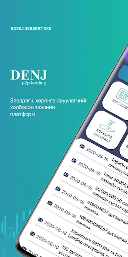 Denj P2P Lending is a platform that delivers financial services using advanced technology. The application allows you to get a loan, issue a loan, invest in working capital and other financial instruments, regardless of geographical location.