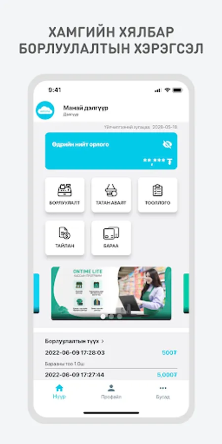 Онтайм технологи ХХК - ний хөгжүүлэн гаргаж буй Ontime MPos гар утсанд зориулсан НӨАТУС - н системд холбогдсон програм юм.