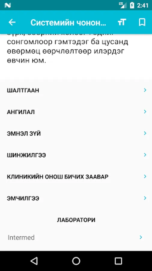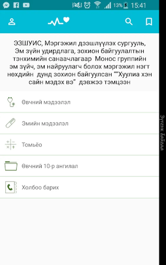 Mongolian medical reference app useful for doctors, physicians, nurses, students, residents, pharmacists, EMTs, and paramedics including drug related information.