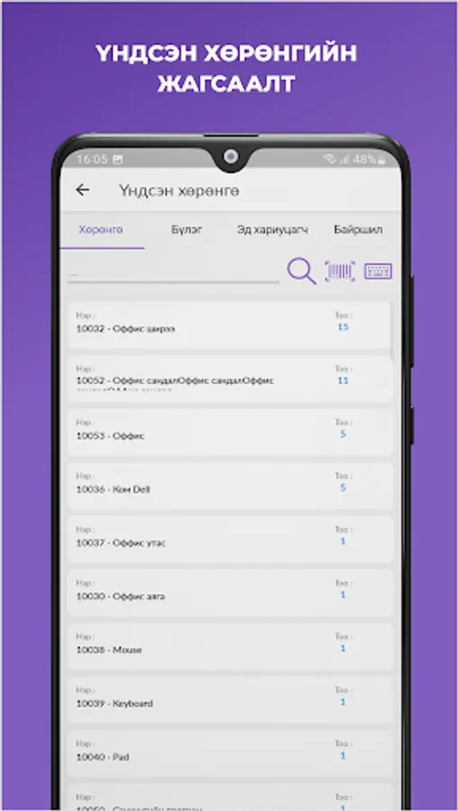 - Үндсэн хөрөнгийн жагсаалт
