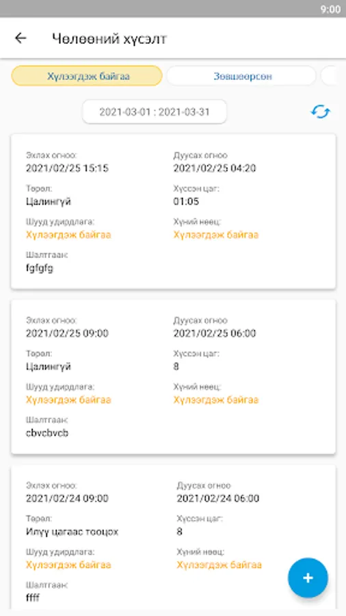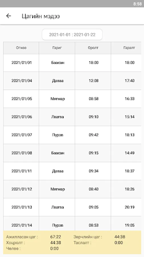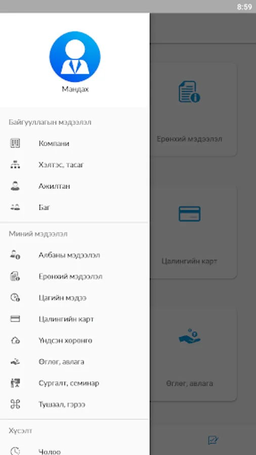 Хүний нөөцийн системтэй холбогдож ажиллах ажилтны мобайл апп