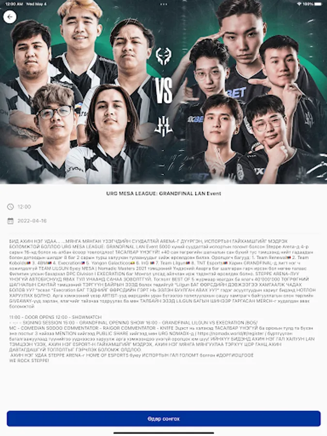 Steppe Arena мобайл апп дараах боломжуудтай: