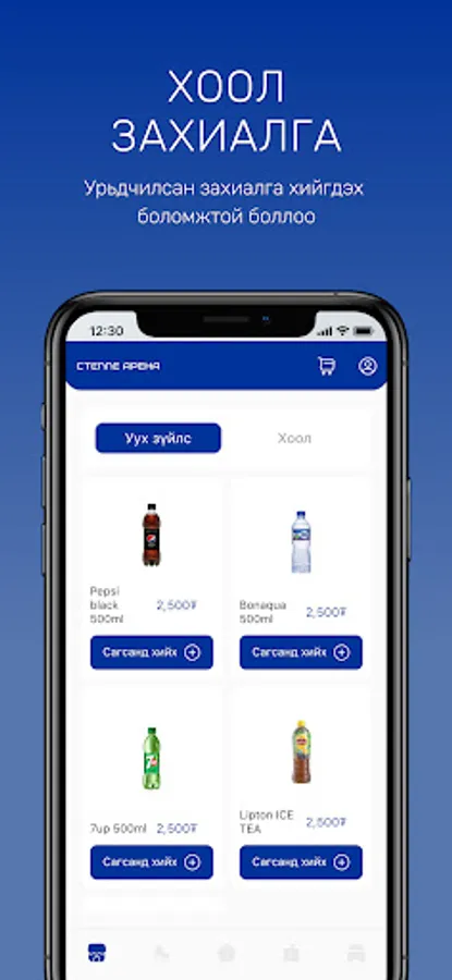 - Хоол захиалга - Степпе арена цогцолбор дотор буюу тоглолт арга хэмжээнд оролцож байхдаа суудлаасаа хоол захиалах боломж