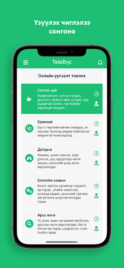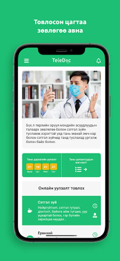 4. Таны товлосон цаг болоход TeleDoc апп-аараа дамжуулан онлайн уулзалт хийн зөвлөгөө авна.