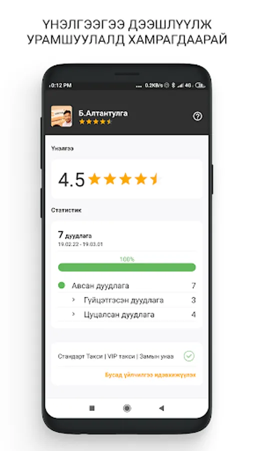*Энэхүү жолоочийн апп ойролцоогоор сард 400МB орчим дата хэрэглэнэ, Стандарт таксины хувьд Bluetooth болон GPS асаах шаардлагатай бөгөөд энэ тохиолдолд таны утасны цэнэг арай хурдан дуусахыг анхаараарай
