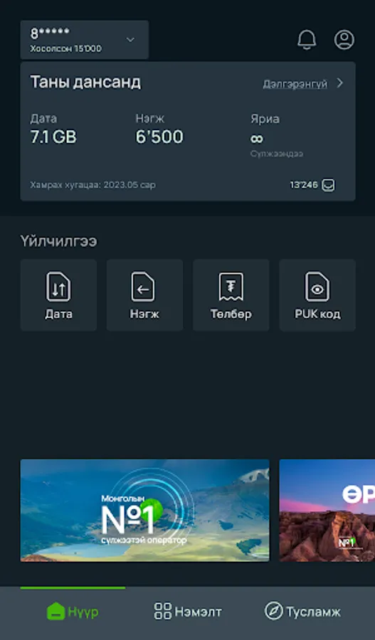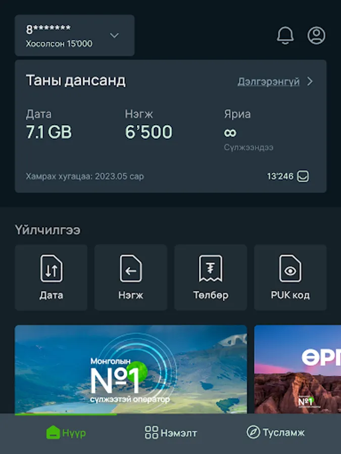 Using the "Unitel" service application, you can access Unitel Group services such as Unitel, Univision, Home Internet, and IP77 anytime, anywhere.
