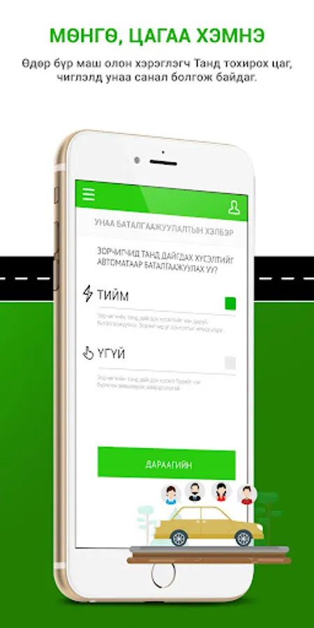 Уг аппликэйшн нь нийтийн тээврийн үйлчилгээг орлох зорилго агуулаагүй тул жолооч аян замынхаа зардлыг нөхөх төдий эсвэл ханьсах зорилгоор унаа санал болгох ёстойг анхаарна уу.