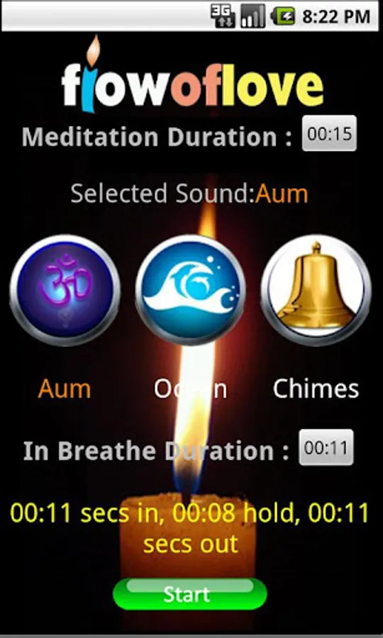 After specifying your total time of meditation, you can specify a meditation sound and in breath duration.