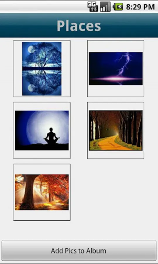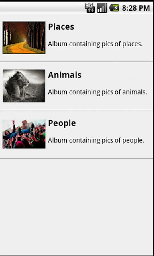 There is a picture playlist made up of 3 parts; places, animals and people. You can populate each of these parts with your own images, but it installs with a few to get you started.