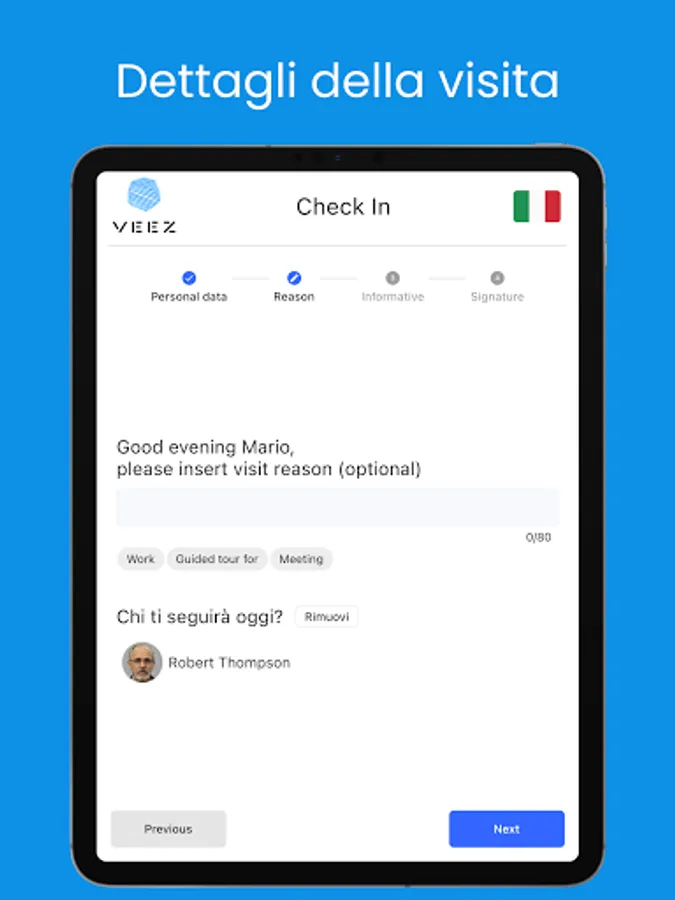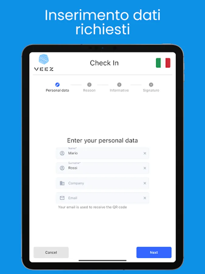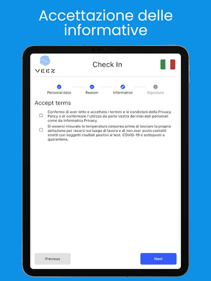 VEEZ also prevents the data from being viewed by subsequent visitors, thus respecting the privacy of those who log into the company.
