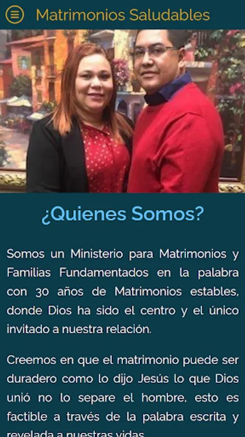 We are a Ministry for Marriages and Families Grounded in the word with 30 years of stable Marriages, where God has been the center and the only guest in our relationship.