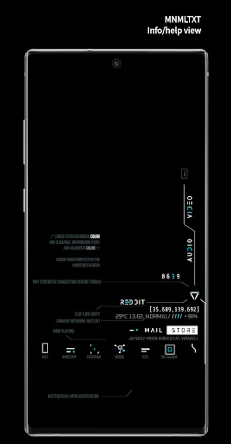 The minimal and functional KLWP. Built to simulate FUI screens, but focuses on usability. Keeps your home screen minimal and yet fully functional. This is a one screen preset. Set this as a wallpaper (Nova launcher recommended).