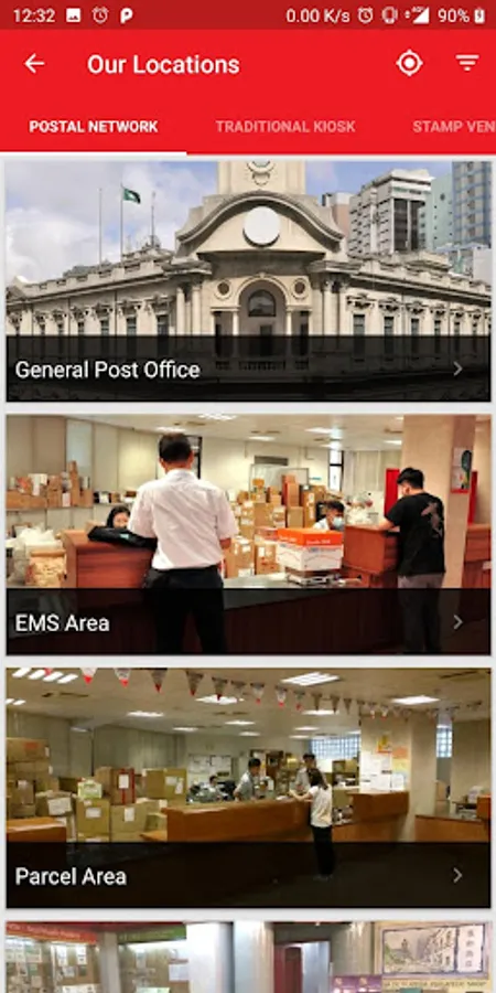 "Searching Us" – Easy to search the nearest post office which provides the service you need. Show the locations on the map and contact information, etc. In addition, find the list of the Traditional Kiosk, Stamp Vending Machines and Pillar Boxes in Macao