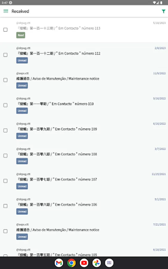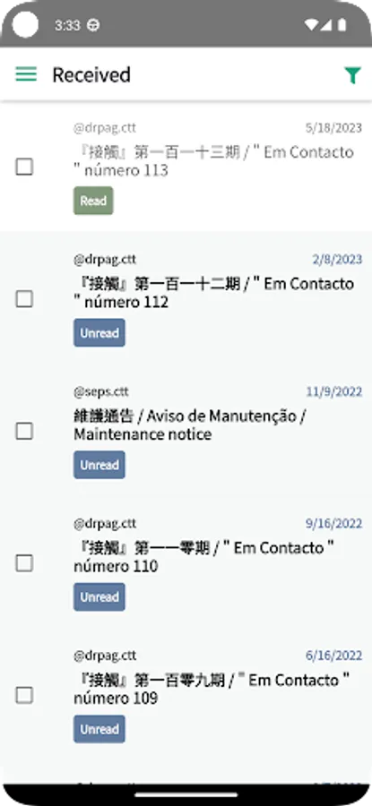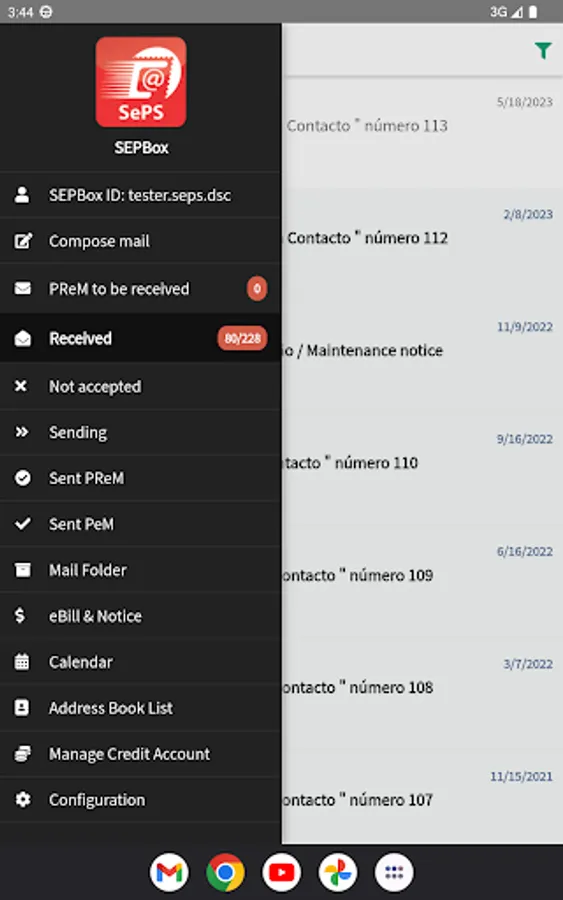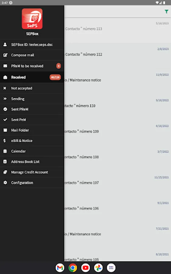Secure Electronic Postal Box (SEPBox) is a free electronic postal box application provided by Macao Post and Telecommunications Bureau (hereinafter CTT). After having made the registration, user will be offered a free SEPBox which enables to receive, electronically and securely, government notifications, Postal Registered electronic Mail and electronic bills, avoiding junk mail and electronic virus.