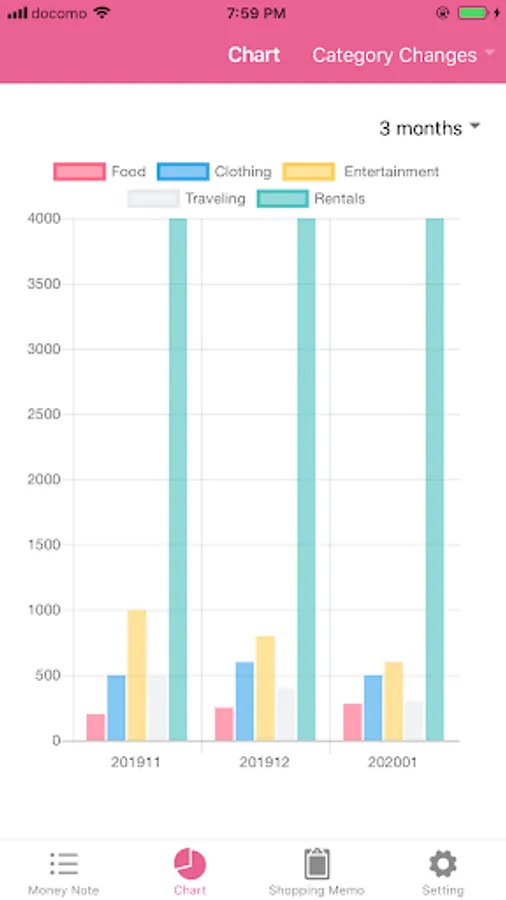 ・Can check the line graph the change in the total amount of three months expense items.
