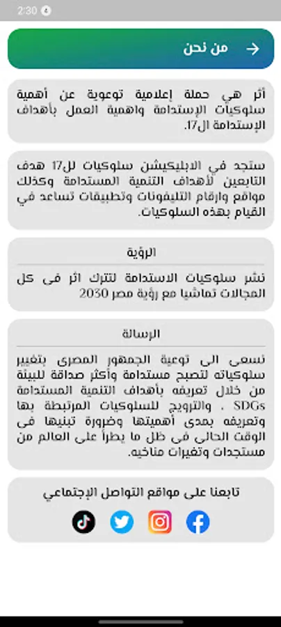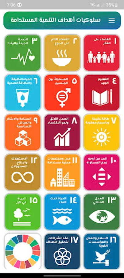 In the application, you will find behaviors for the 17 goals of the Sustainable Development Goals, as well as locations, phone numbers, and applications that help in carrying out these behaviors.
