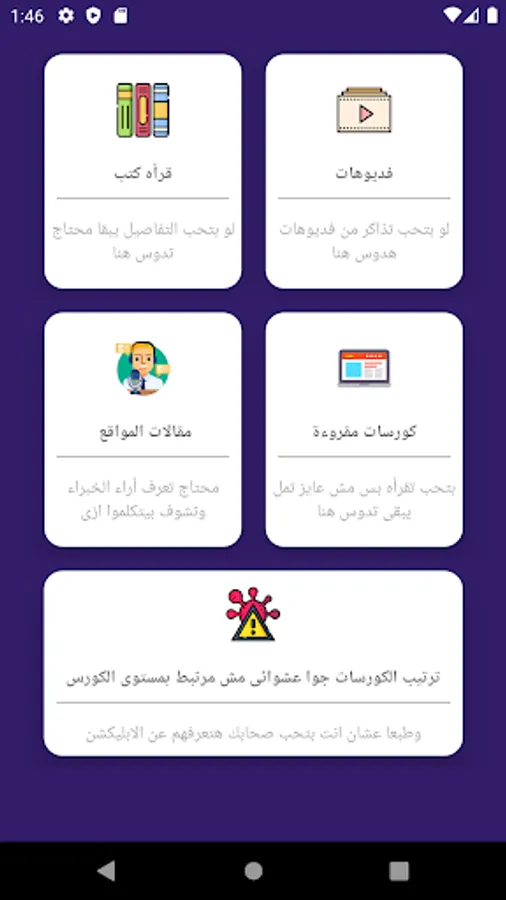 2-توفير مجموعه من الكورسات ا(فيديوهات - كتب -مقالات مقروءة - كورسات مقروءة) عربي /انجليزي