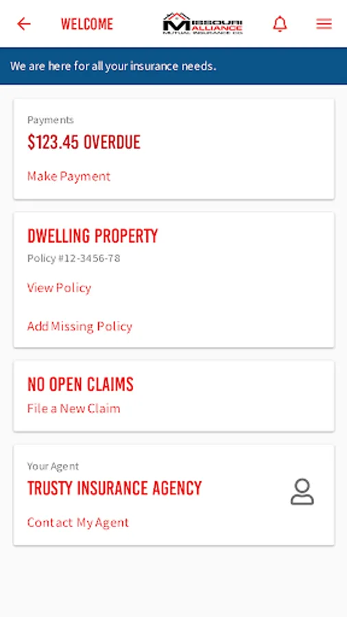 * Receive notifications and messages from Missouri Alliance Mutual Insurance Company