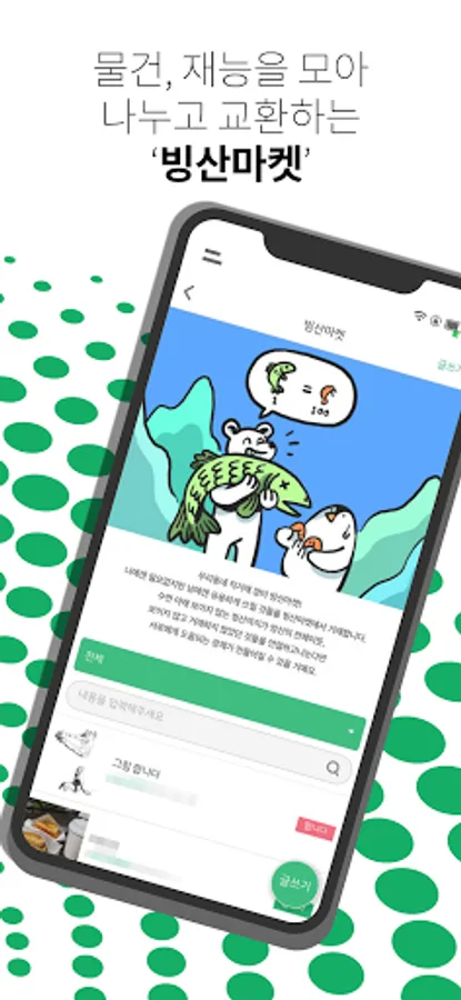 Through the sharing and donation function between users, the talent and goods sharing market (iceberg market), you can think about the environment and practice sharing easily.