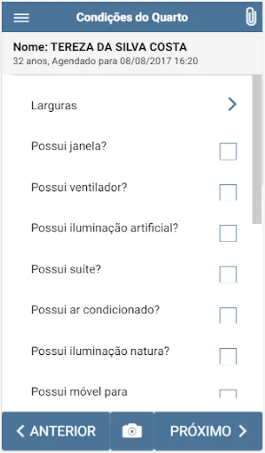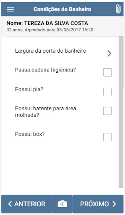 In order to facilitate the process of inspection, equipment used in the treatment, objective questions (wide doors, bed, bedroom, hallways, etc.), photo storage, gathering information about the residence, street, facility for ambulances.