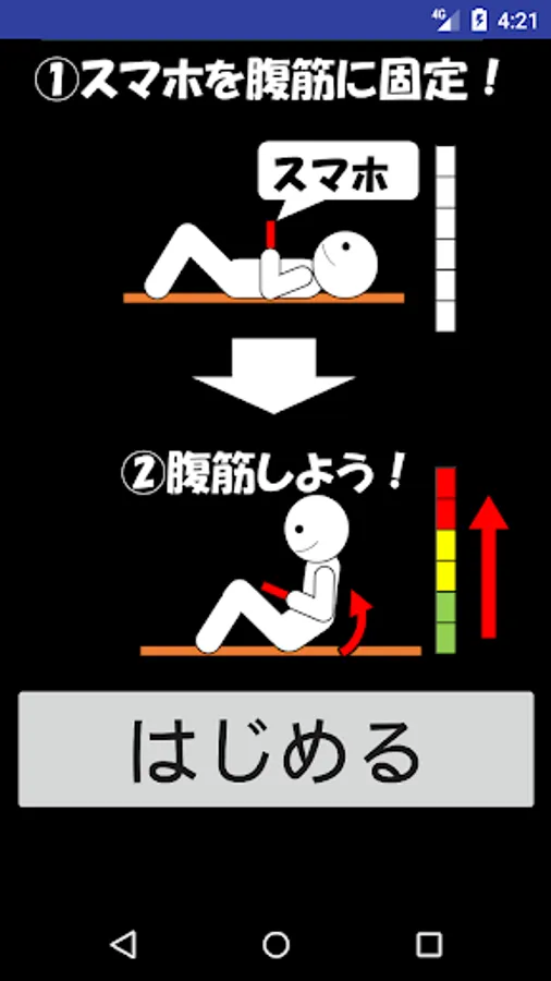 If you press the start button, after only the abdominal muscles to secure the smartphone to the abdominal muscles.