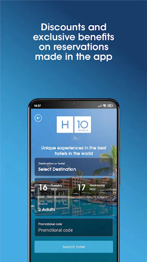 Welcome to the new H10 Hotels app! Discover a new way to quickly and efficiently see all the information about our accommodations and obtain the most of your stay.