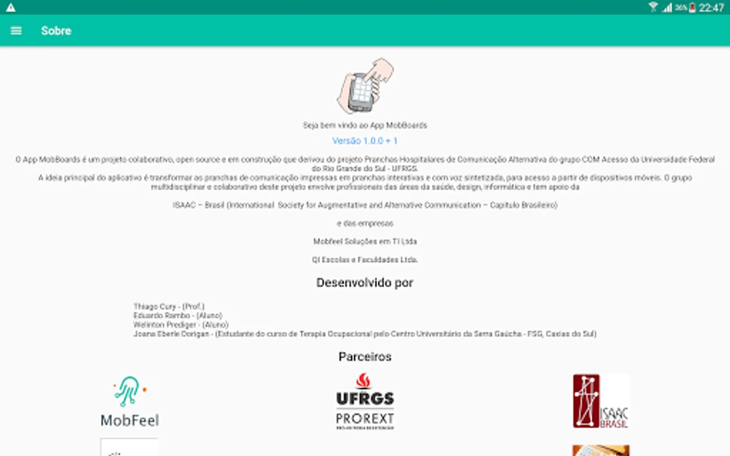 The application (MobBoards) is a collaborative, open source and under construction project that
