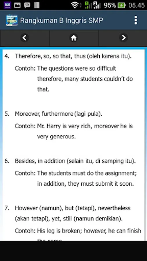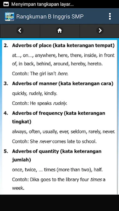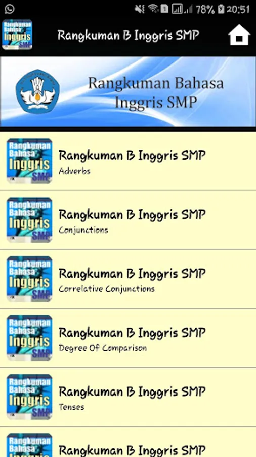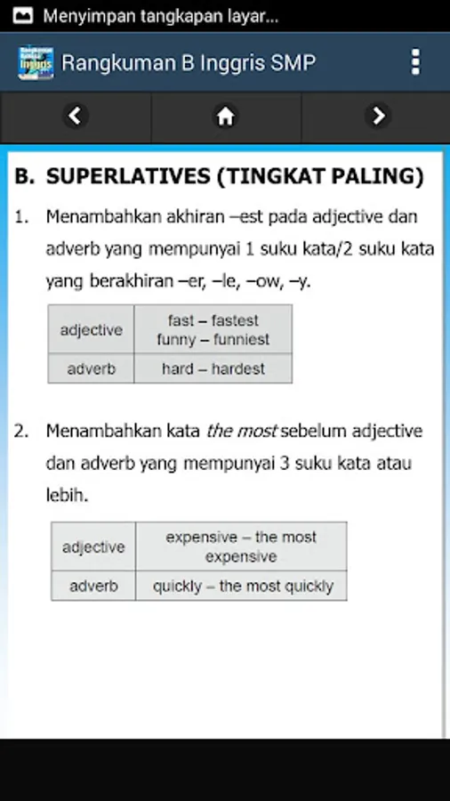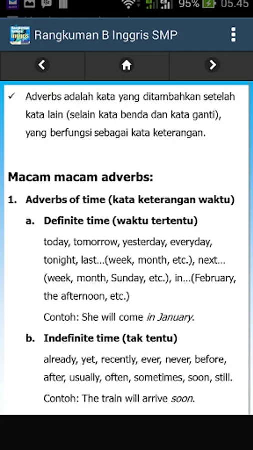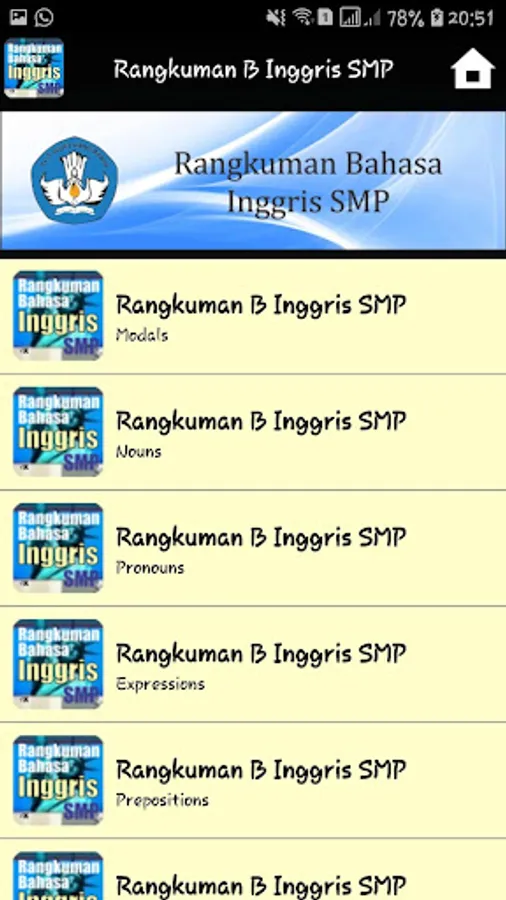 This English B Middle School Summary Application Contains a summary of Important Materials in English Subjects for the Middle School Level Equals. The application is lightweight and very easy to use, and can also be used without internet access (Offline). This English material is reviewed according to chapters learned at school, and can be learned anywhere and at any time. Summary B of Middle School English.