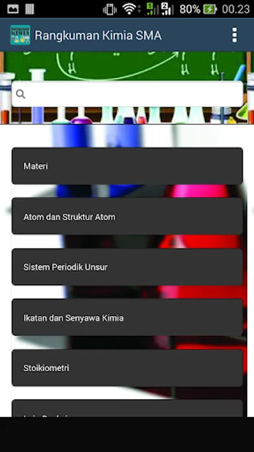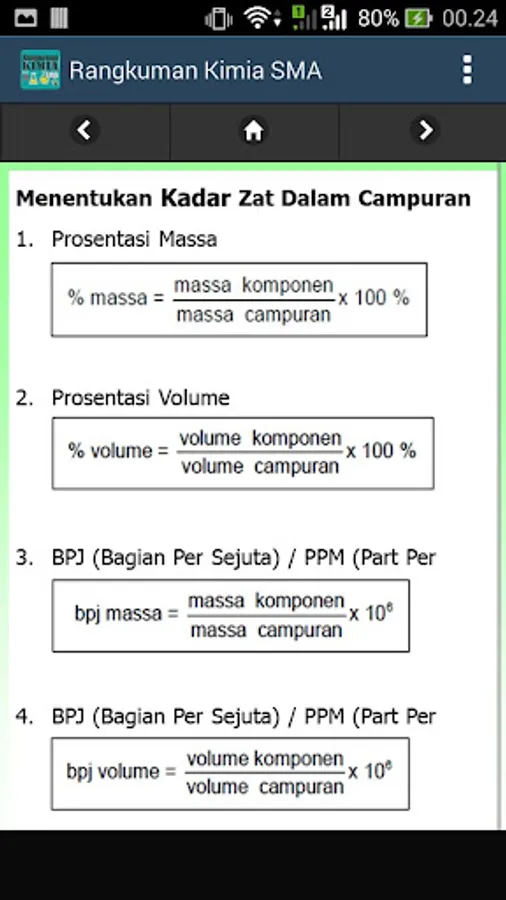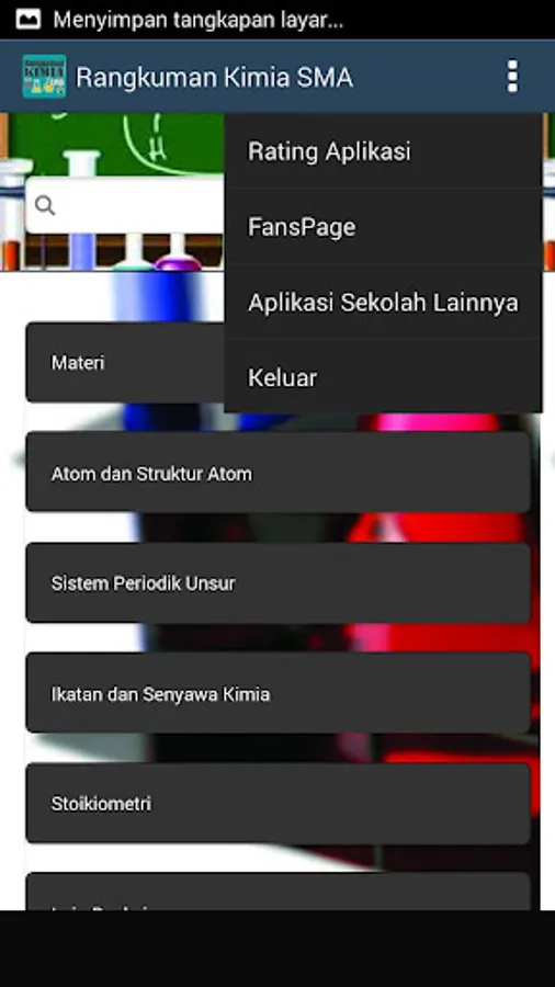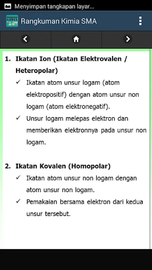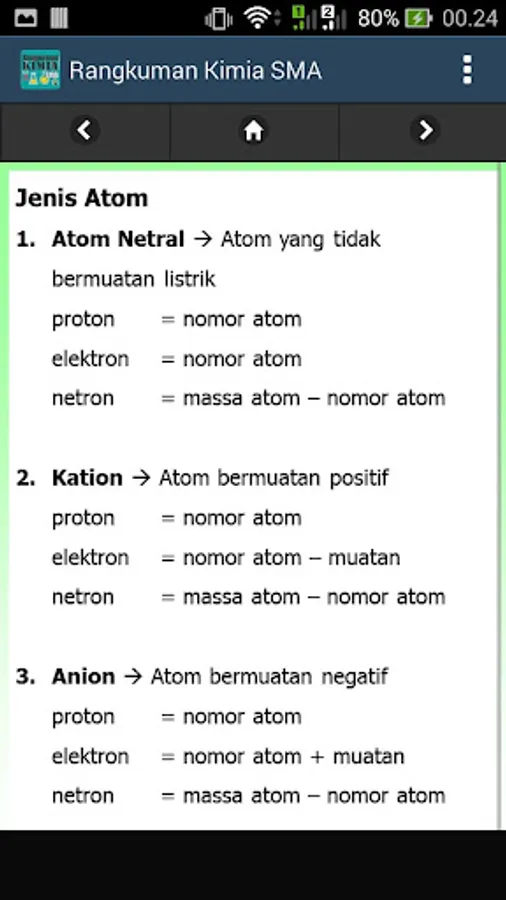 Summary of High School Chemistry Subject Matter Material at the same level is made in an Android-based application in detail and in full. The high school chemical formula application is a chemistry learning application that provides a complete summary of chemical formulas at the High School level.