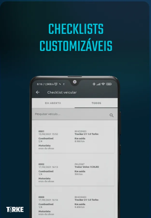 Vehicle fleet management and administration platform, with customizable checklists that are applied to any type, model or configuration of vehicle, from a simple passenger car to a backhoe.