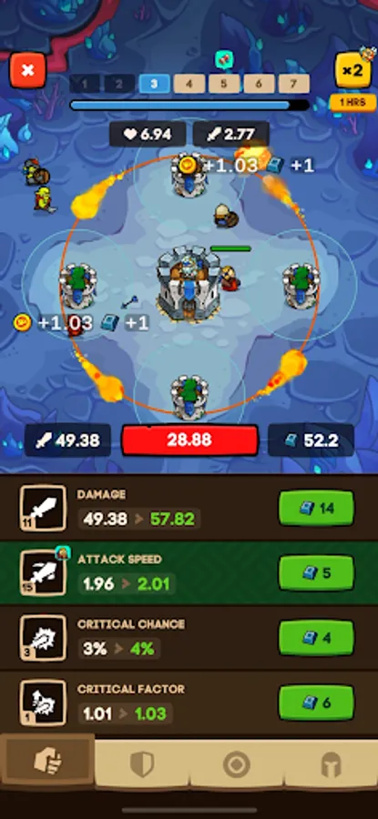 Apexlands gameplay is simple: defend the tower until its destruction. If you lose, gather strength and start again. You don’t need to be a skilled warlord in this Idle TD game!