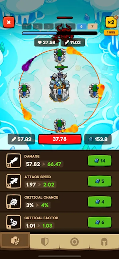 Use iron during battle to manage resources, grow power and defense of your tower. After battle wisely invest gold into permanent upgrades. Pay attention to the long-term perspective and unlock new abilities, allowing you to make game-changing improvements.