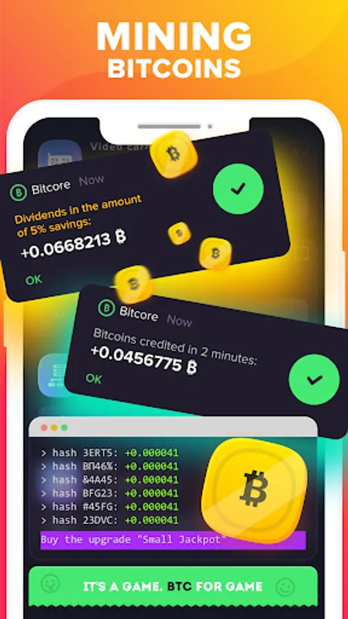 Bitcore: idle crypto clicker is a mining simulator. Mine Bitcoin(game currency) with one finger – just click and get Bitcoin(game currency) on your mining farm.