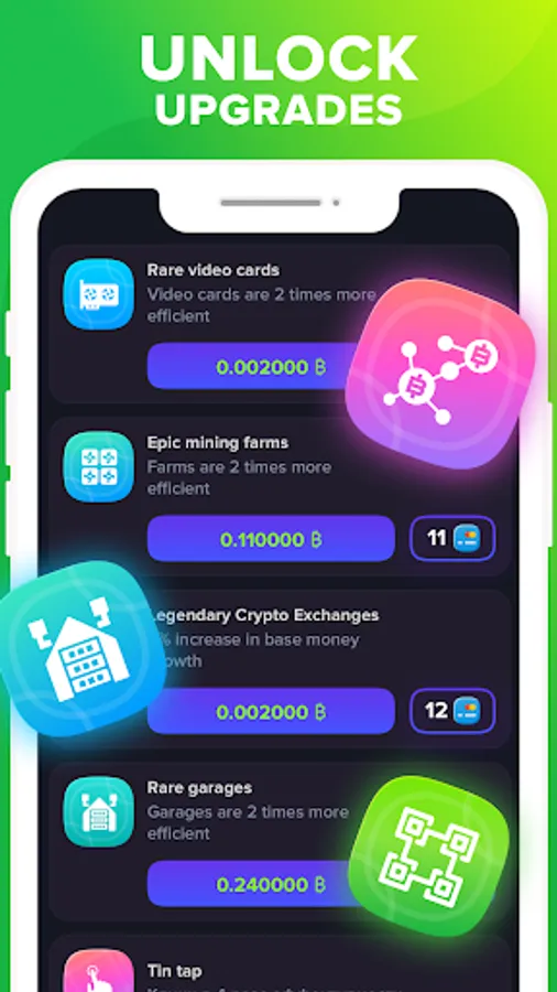 There are over 400 different upgrades to help you mine Bitcoin(game currency) and rake in the dough. Work the video cards and improve cooling systems, increase click power and passive earnings to build your crypto empire!