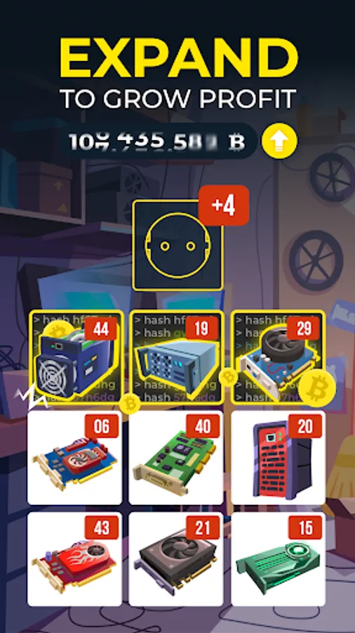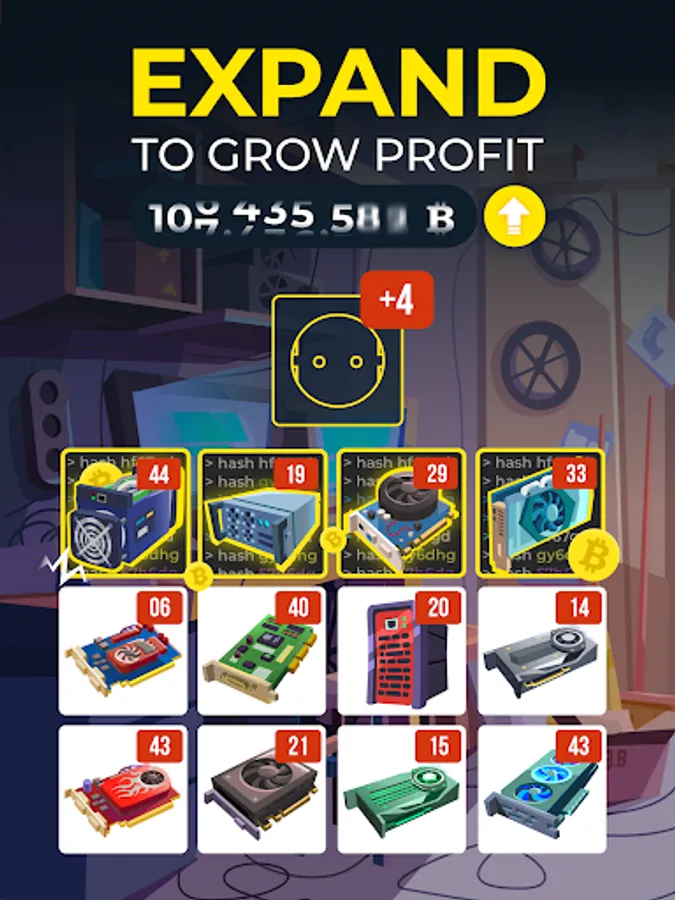 The goal of the game is to build and expand your farm, discover up new devices for mining Bitcoin. Use the merge mechanics to open up new miner devices and grow your mining farm. Upgrade all the improvements to grow your cryptocurrency business profit.