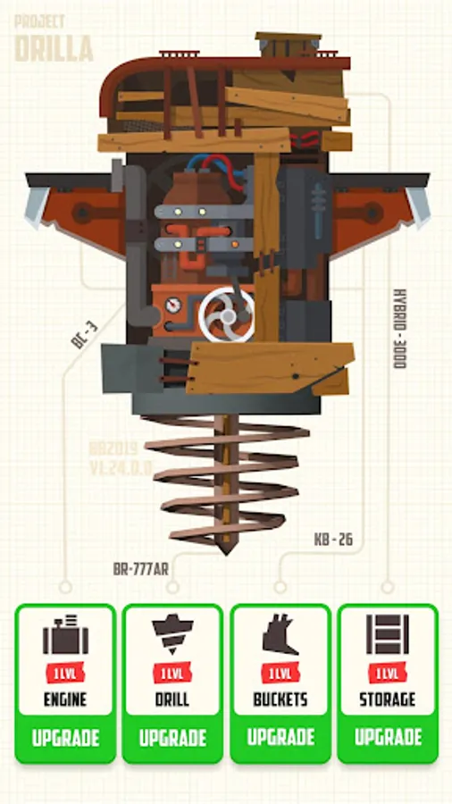 Gained upgrades are displayed on the game model of the drill. You can craft more than 200 details are available in the game.