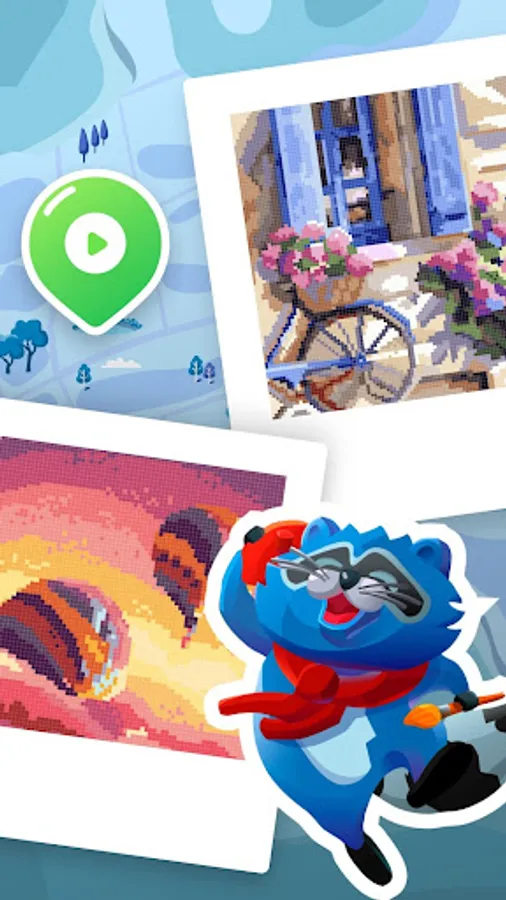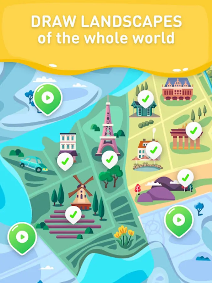 ⭐️ global map for exploring. discover different countries and new landscapes for coloring new pixel images.