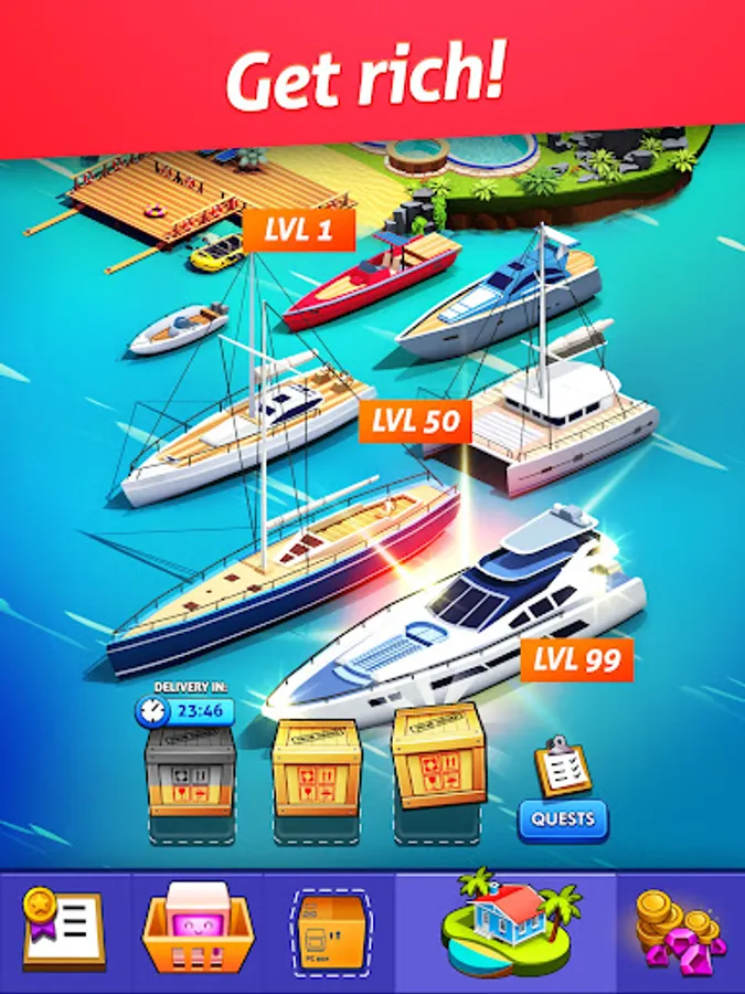 A casino, a pizzeria, a diving school, a restaurant, an ice cream shop, a pier, a marina or a five-star hotel can all be yours and earn coins for you.