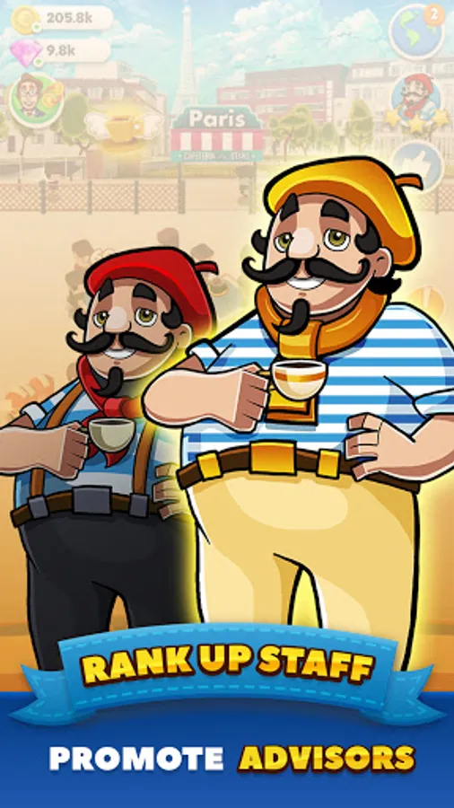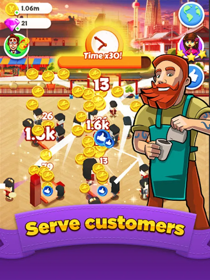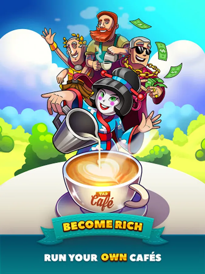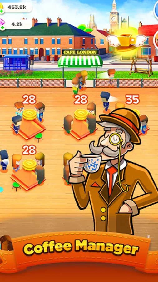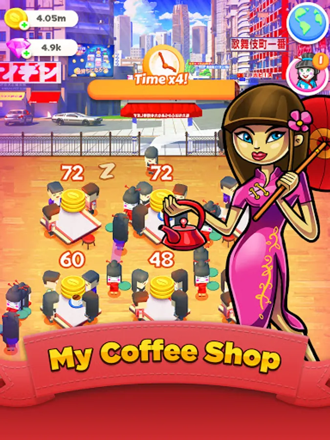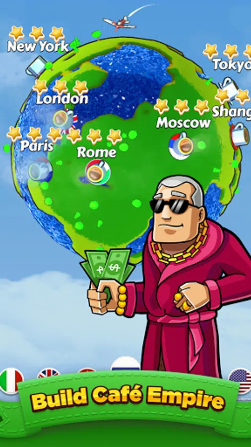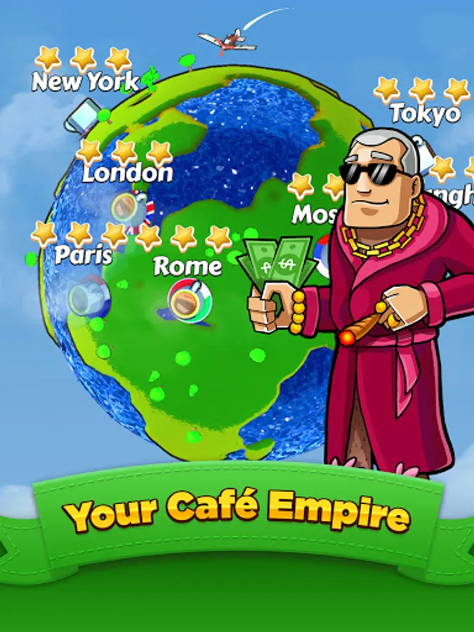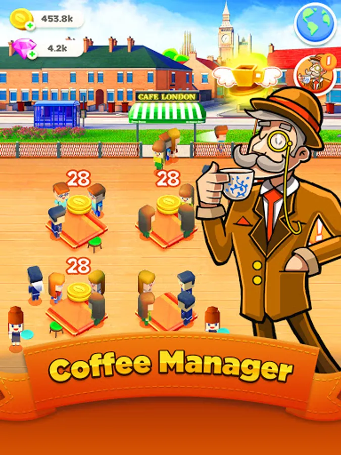 Manage coffee shops around the world: hire employees, buy tables and coffee machines, sell the best black hot coffee in the world. 🍩