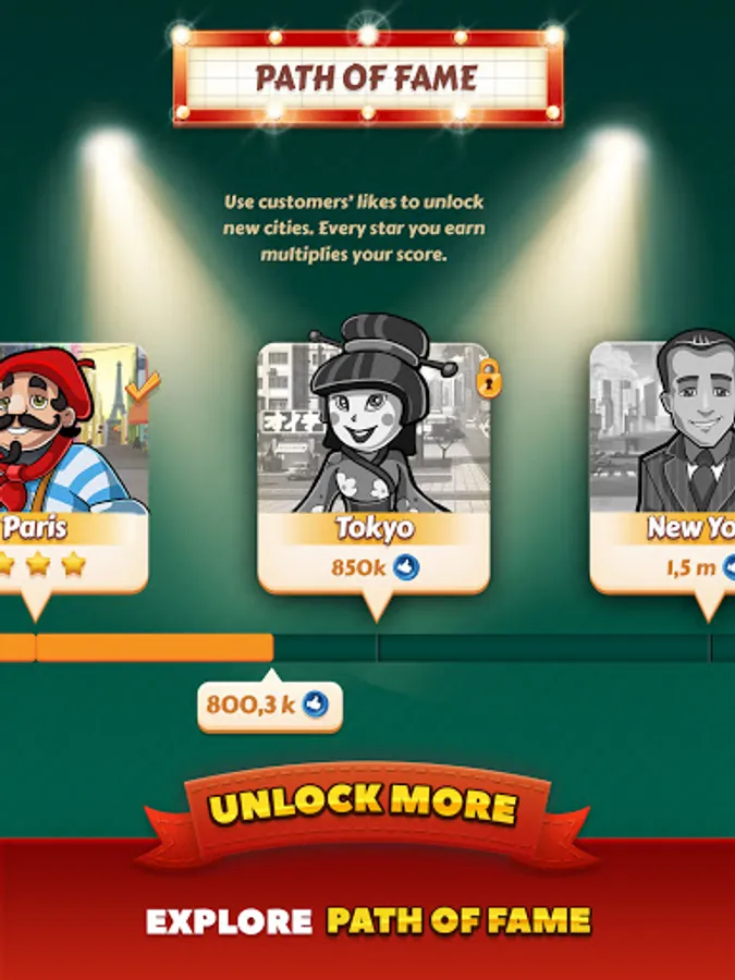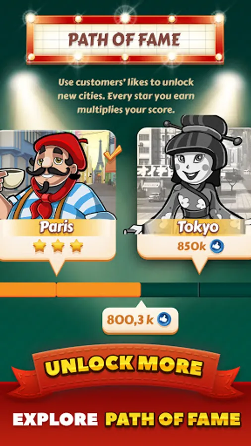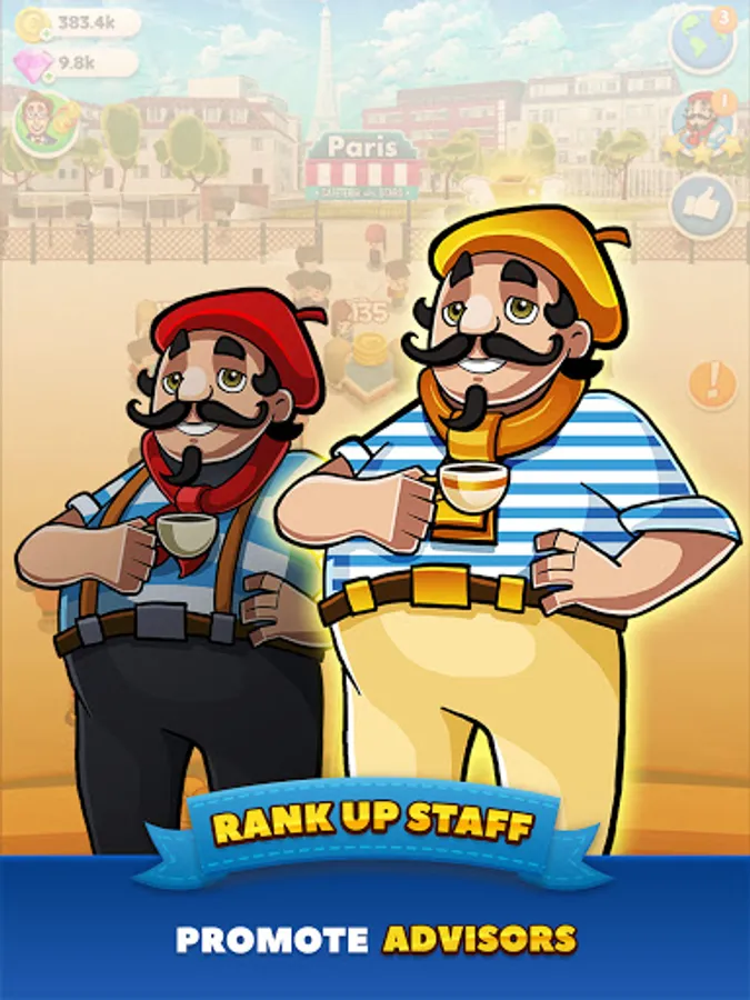 Start as the manager of one small cafeteria and build your empire step by step. 🍪