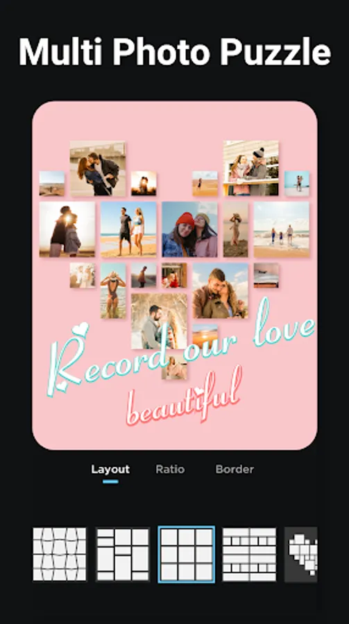 ★ Choose from a wide variety of grid layouts to create a photo collage.