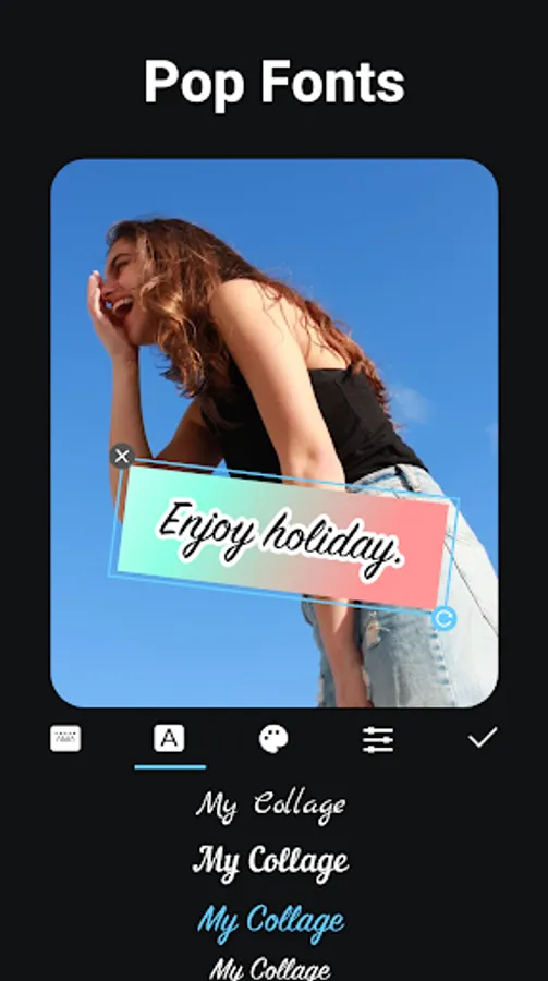 ★ Add text to the photo, rotate and drag the text to put the text in the best place for the collage picture.
