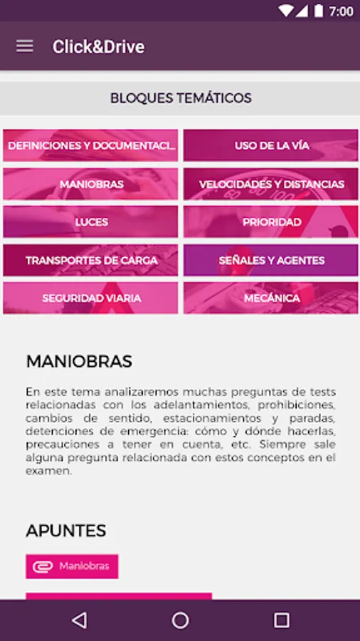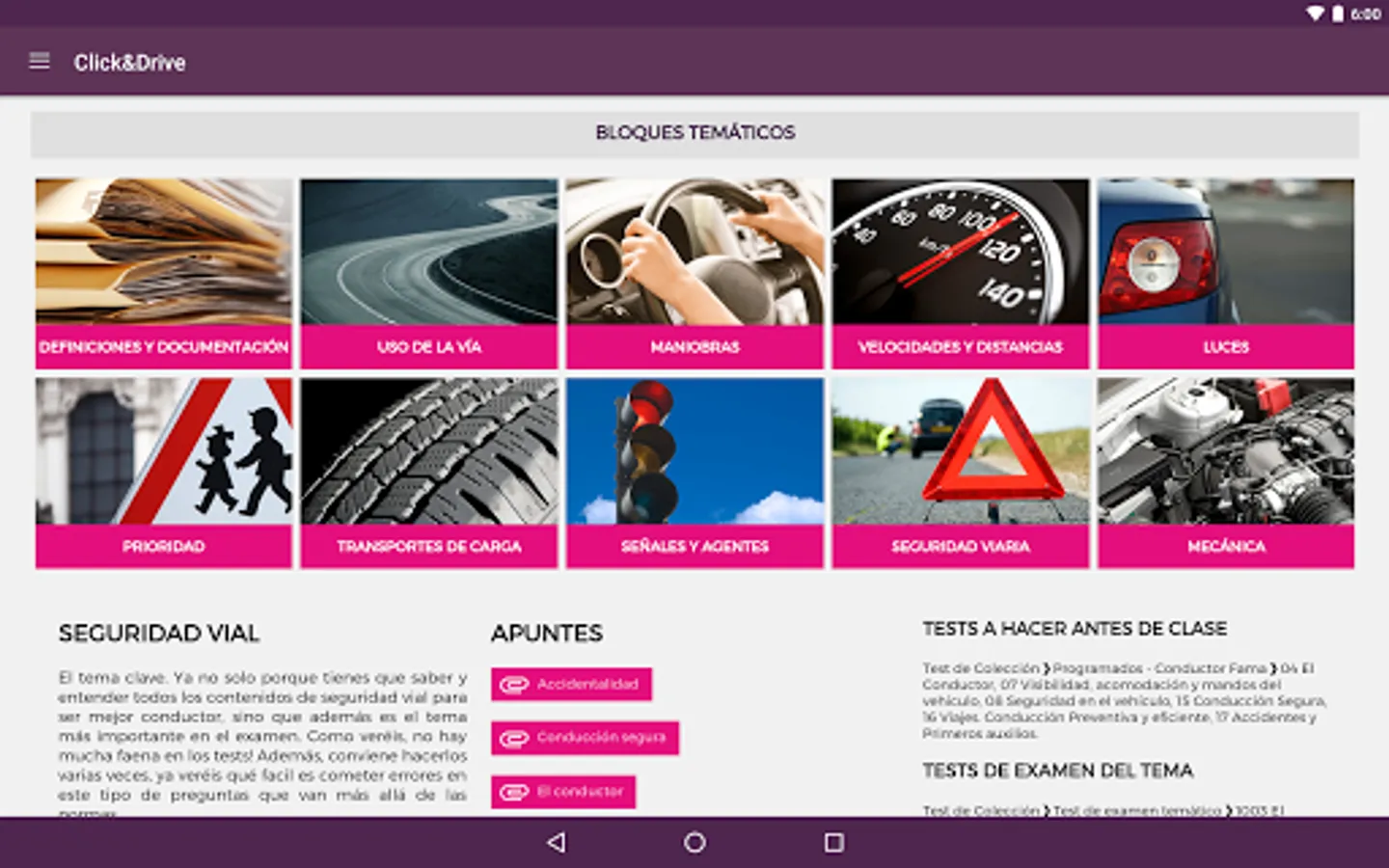With Click & Drive you can prepare the theoretical whenever and wherever you want at class notes or by official examination tests. Booking practices, see the comments and reports of your teacher, consultation and book your examinations, controls your balance and make your payments online, enter contests, get discounts and more ..