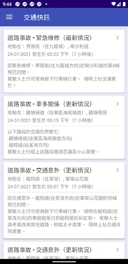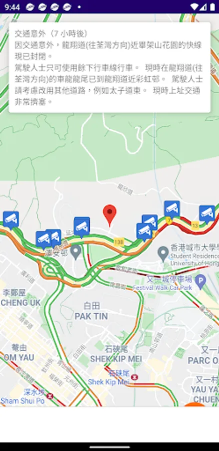 Provide visualize traffic condition and live camera images along major expressways in Hong Kong. Total 180 cameras available with every 3 minutes refresh update.