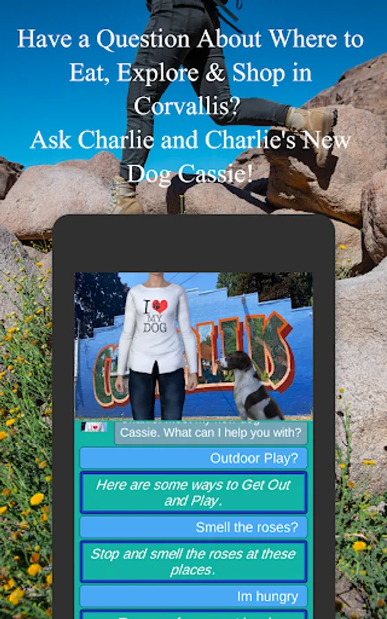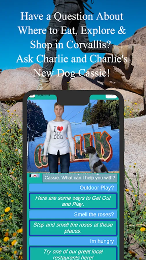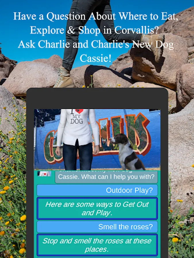 CHARLIE SPEAKS: Meet our first City's non-binary Chatbot Charlie and Charlie's NEW, adopted dog Cassie. Charlie and Cassie can help you discover what you are looking for with love and kindness. Ask they for where to play outdoors.