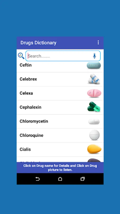 Drugs dictionary is an offline medical drugs guide with medicine picture. By this app you can know about drugs uses, How to take, Side effects, Precautions and Storage system.
