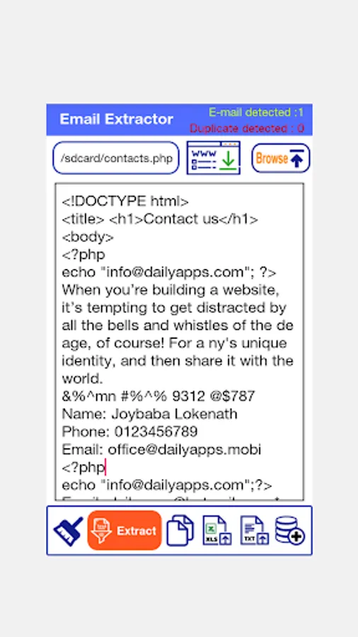Email Extractor is a very powerful and professional tool to extract e-mail addresses from various sources: like URL, all kinds of local text files of your device.