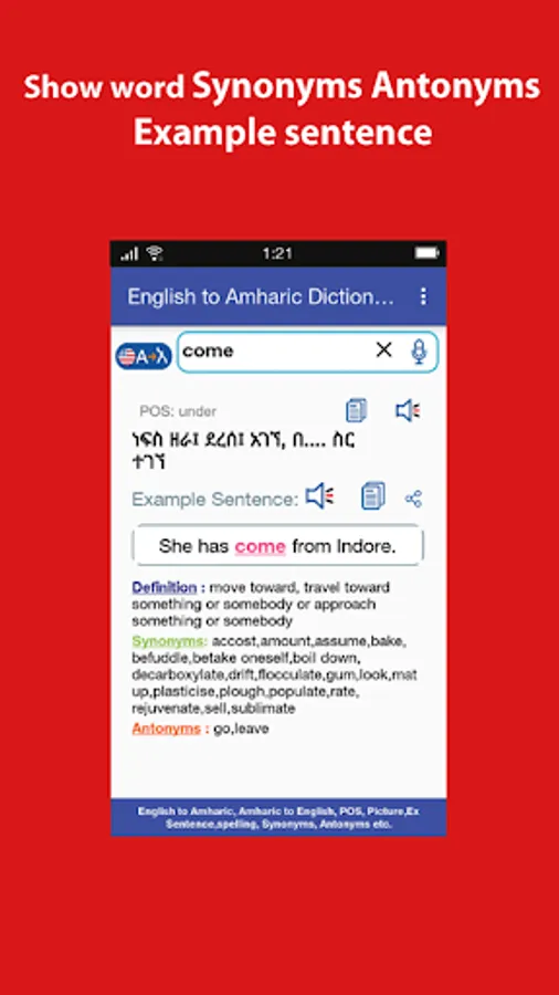English to Amharic dictionary and Amharic to English dictionary. Also show available meaningful picture of word meaning.