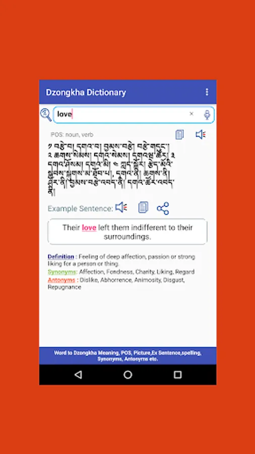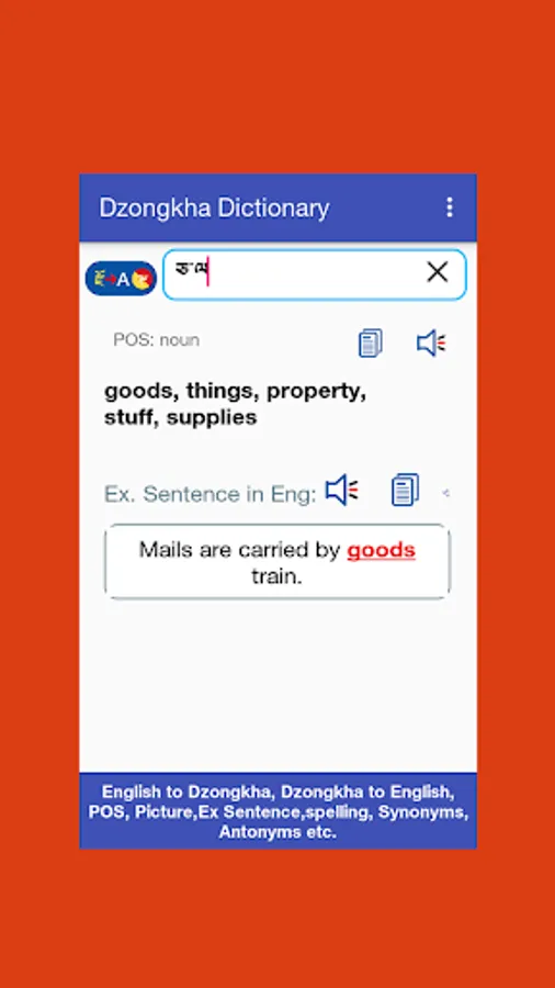 English to Dzongkha and Dzongkha to English Dictionary. Both way searching system, user friendly design.
